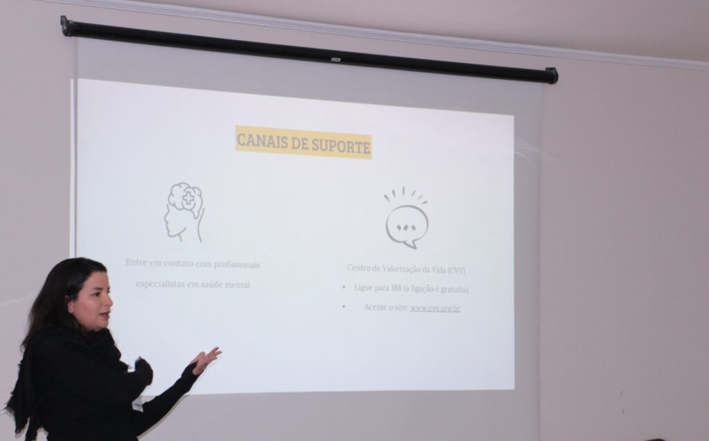 Durante as sessões, nossos colaboradores refletiram sobre temas atuais e desafiadores, como a ludopatia e o vício em telas, compreendendo como esses fatores afetam a saúde mental e podem estar relacionados à ideação suicida.